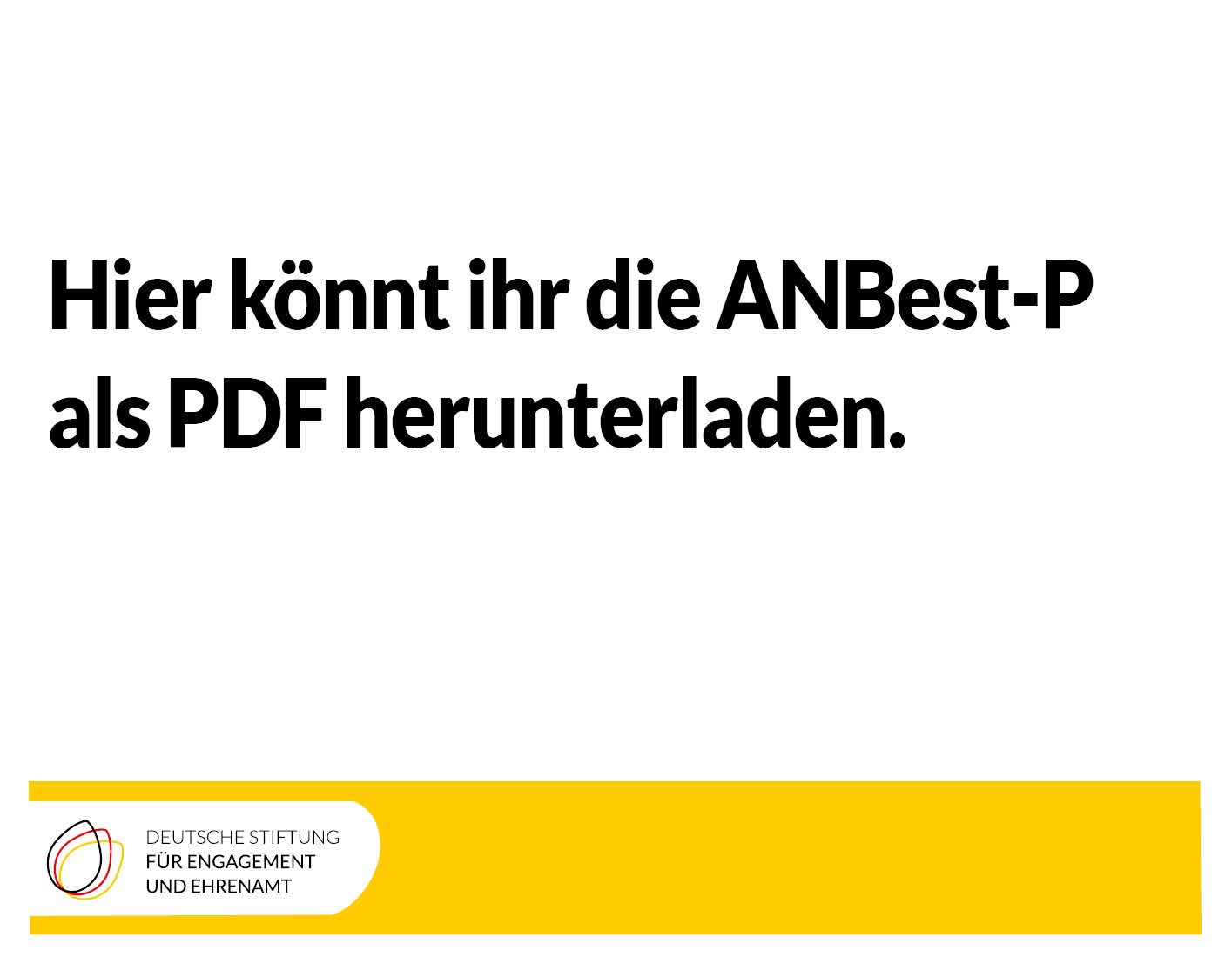 Wir möchten euch hier einen spielerischen und praxisnahen Zugang zum Thema ANBest-P ermöglichen. Konkrete Fragen, zu laufenden Projekten und Förderungen könnt ihr wie gewohnt über das Fördermittelportal an uns richten.