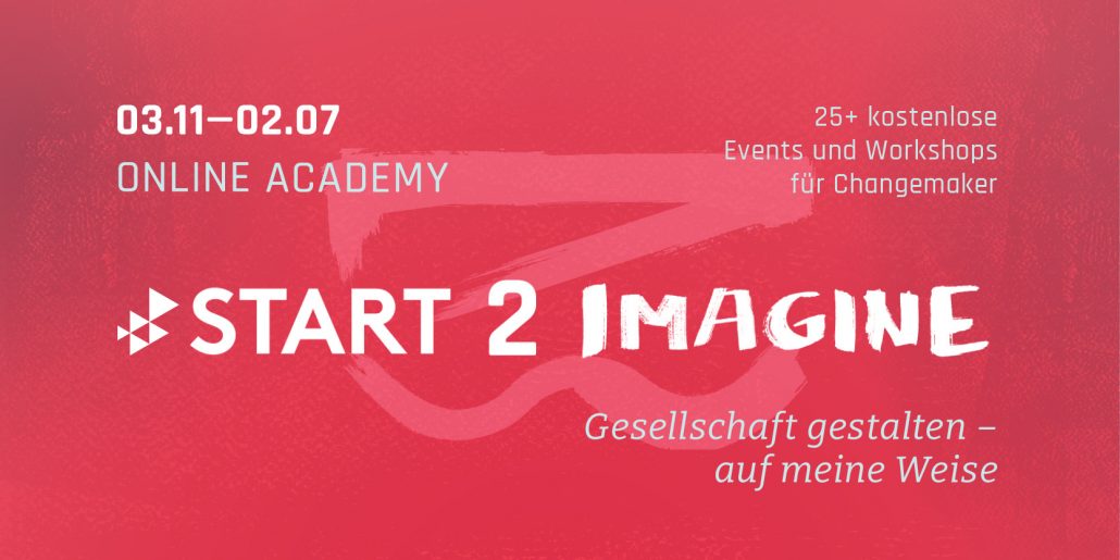 Das Team hat in kürzester Zeit die virtuelle Akademie START2IMAGINE mit über 25 digitalen Formaten auf die Beine gestellt und im November 2021 gestartet. Die Teilnahme ist für Engagierte und solche, die es werden wollen, kostenlos.
