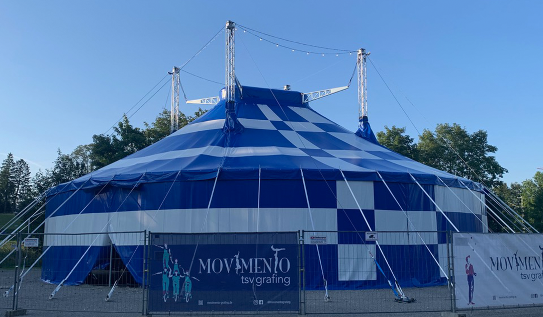 „Vier-Mast-Zelt statt Vier-Mann-Zelt“, so umschreibt Stefan Eberherr, Vorstand von Movimento Grafing, das neue Zuhause der Artistikgruppe. Seit über 20 Jahren leisten die überwiegend ehrenamtlich Engagierten des bayerischen Vereins TSV Grafing von 1864 e.V. vorbildliche Nachwuchsarbeit.