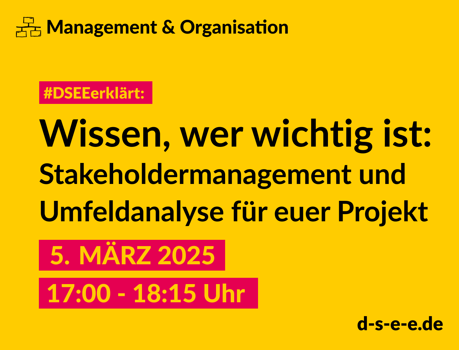 • #DSEEerklärt Projektmanagement Teil 2: Wissen, wer wichtig ist- Stakeholdermanagement und Umfeldanalyse für euer Projekt
