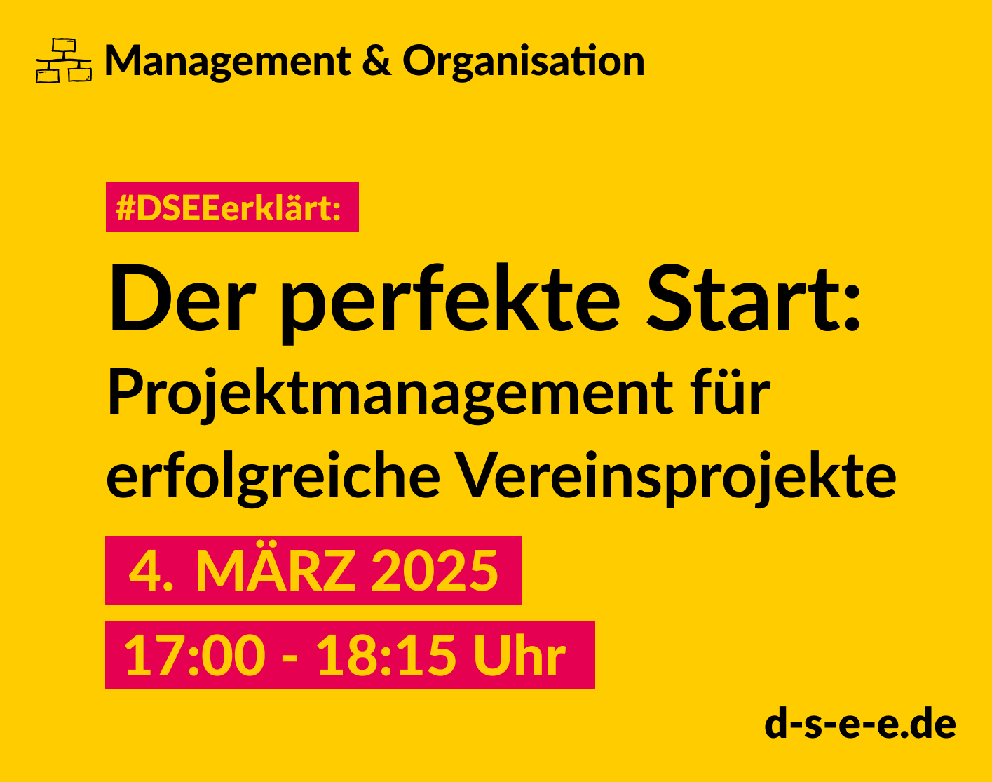 • #DSEEerklärt Projektmanagement Teil 1: Der perfekte Start – Projektmanagement für erfolgreiche Vereinsprojekte