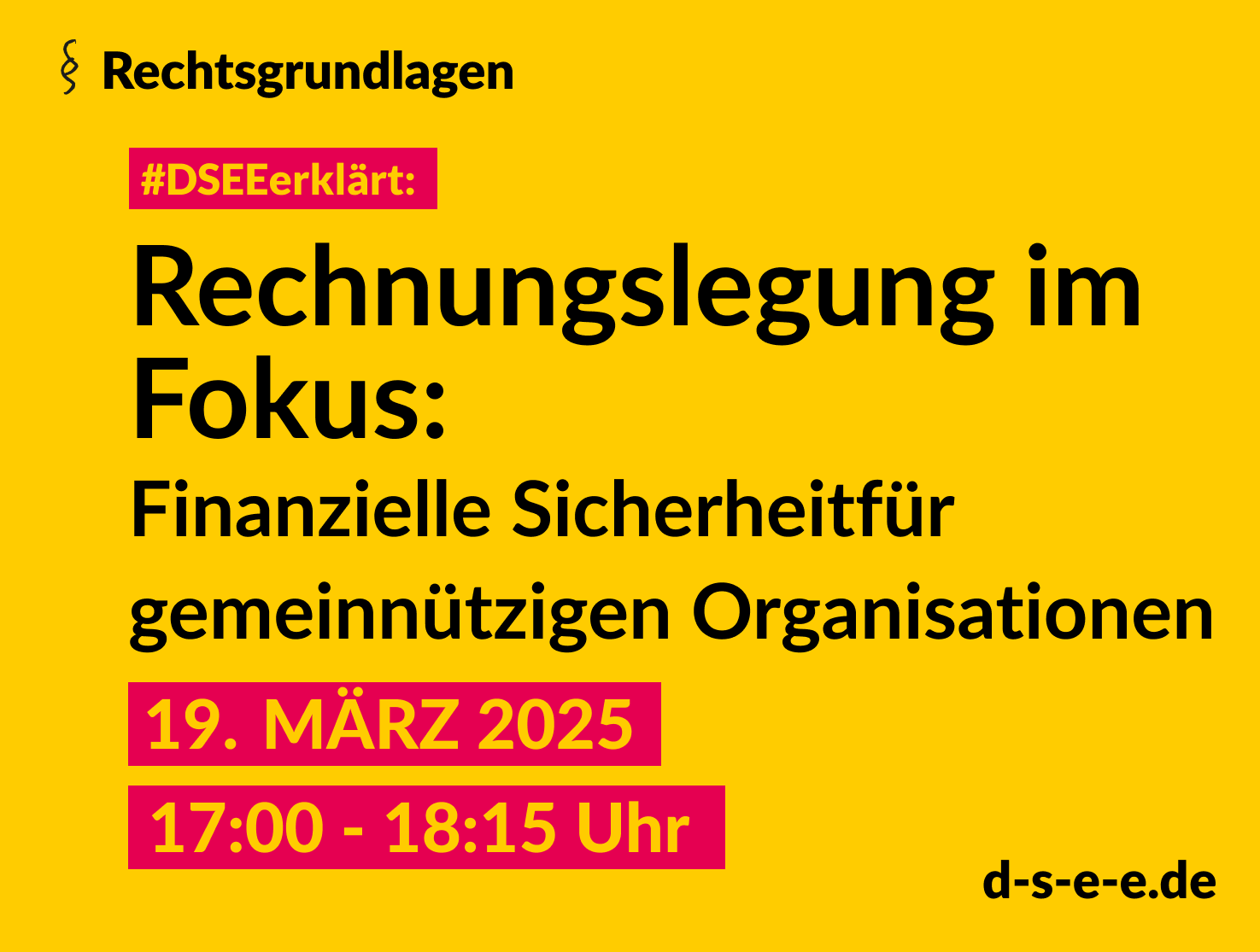 • #DSEEerklärt Steuern Teil 2: Rechnungslegung im Fokus – Finanzielle Sicherheitfür gemeinnützigen Organisationen